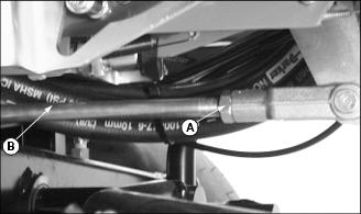 2. Loosen jam nut (A) on the brake adjusting rod (B).