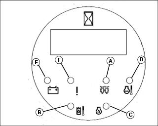 • Engine Coolant Temperature Indicator (D) will glow if engine temperature becomes excessive. Stop engine and determine cause.