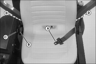 • Engine OIl Pressure Indicator (C) will glow when engine oil pressure is low. If lamp glows when engine is running, stop engine immediately. See your John Deere distributor.