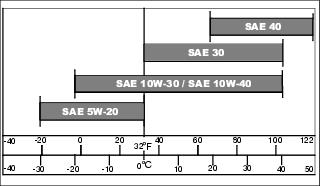 Use oil viscosity based on the expected air temperature range during the period between oil changes.