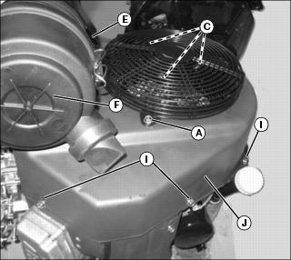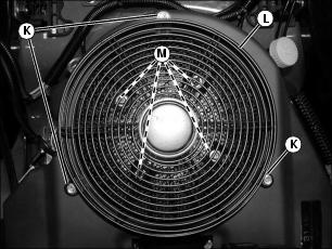 7. Remove the three hex head bolts (K) and fan shroud (L).