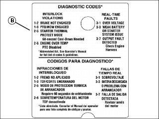 3. If starter does not engage, use the diagnostic light (A) and diagnostic codes (B) to diagnose the problem.