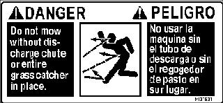 Do not mow without discharge chute or entire grass catcher in place.