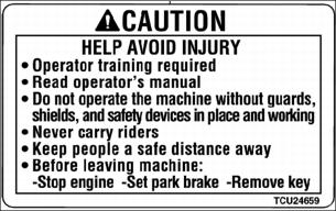 The operator’s manual also explains any potential safety hazards whenever necessary in special safety messages that are identified with the word, CAUTION, and the safety-alert symbol.