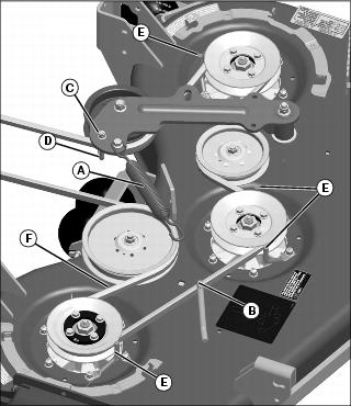 NOTE: If necessary, see drive belt installation label on mower deck.