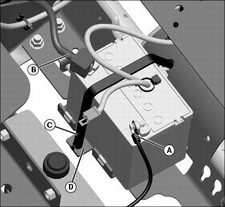3. Disconnect negative (-) battery cable (A).
