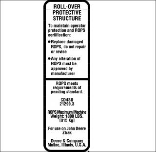• ROPS Maximum Machine Weight: 1800 LBS. [815Kg]