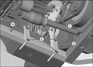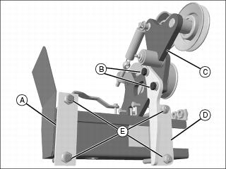 1. Remove plates (A)(D) from the driveline and idler arm assembly by removing nuts, bolts and washers (E).