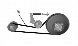 11. Install the fan belt (N). Verify that the belt is routed correctly.