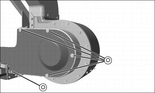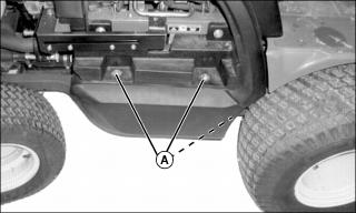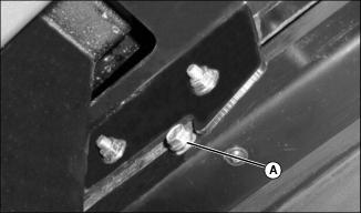 • Remove cap screw (A) from inside edge of engine cover slides, on left and right side of machine.