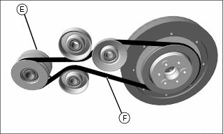 8. Install belt (F) on driveline pulley (E). Verify that belt is installed correctly and properly aligned.