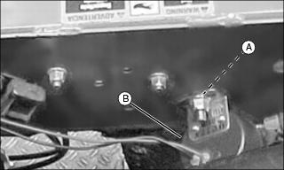 2. Install back-up alarm (B) as shown, using screw and nut.