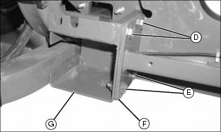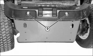 5. Remove two bolts (D) and nuts securing bumper to machine.
