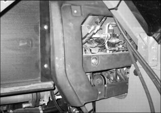 2. Push the engine cover onto the rails until top edge of engine cover is over radiator cap.