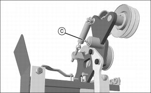 3. Graisser le graisseur (C) de l’axe de pivot du tendeur de courroie double interne.