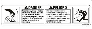 Avoid injury from rotating blade and thrown objects. Do not operate blower without entire grass catcher in place. Shut engine off before unclogging or servicing.
