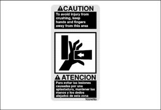 The machine safety labels shown in this section are placed in important areas on your machine to draw attention to potential safety hazards.