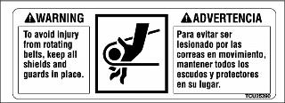 • To avoid injury from rotating belts, keep all shields and guards in place.
