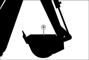7. Rotate bucket until top edge (D) is parallel with ground.