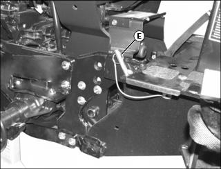 9. Remove lockpins from pins (E) and remove pins (E) from backhoe.