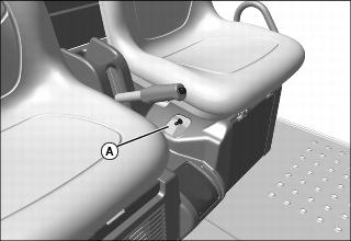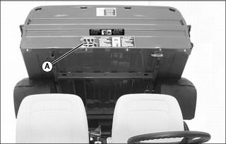 A battery position and connection safety/diagram label (A) is attached to the front of the vehicle cargo box. Always refer to the battery position/connection diagram: