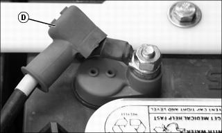 10. Install the proper terminal boots (C) (red on positive and black on negative) securely over each battery terminal.