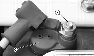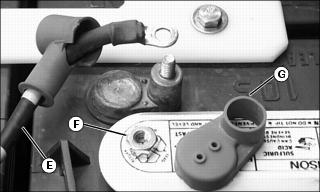 IMPORTANT: Avoid damage! Discolored or melted terminal boots, burn spots or damage to battery case or terminals are possible signs that the terminal connections may be loose.