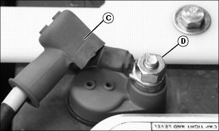 8. Pull the boots (C) on the terminal cables back far enough to expose each terminal connection.