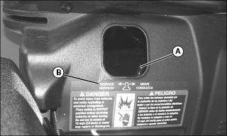 5. Move service/drive switch (A) to the SERVICE position (B).