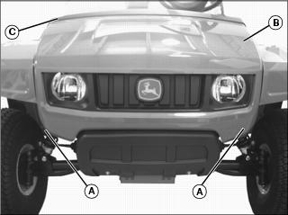 Tighten flange front cap screws (B) to 88 Nm (65 lb-ft).