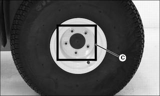 Tighten rear drive wheel nuts (C) alternately to 88 Nm (65 lb-ft).