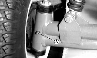 6. Lubricate one grease fitting (A) on each king pin axle arm with the preferred grease or an equivalent.