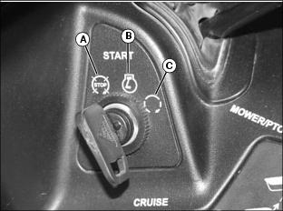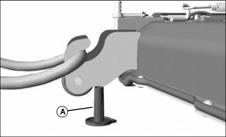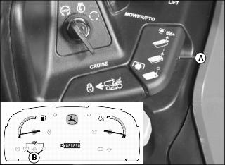 Use mower height control knob (A) to adjust mower cutting height, and lock mower deck lift arms in raised position. See your mower deck operator's manual for instructions.