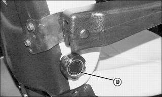 3. Slide rails with seat and suspension forward one inch to align with forward set of mounting holes (D).