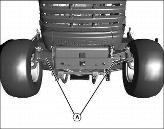 Two adjustment points are located on the left and right rear of deck rim in front of the rear tires.
