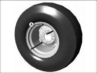 2. Note location of tire valve stem (A). Install rods through square holes in rim center as shown.