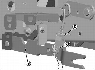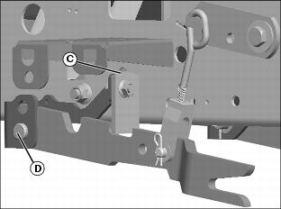 IMPORTANT: Avoid damage! Mower deck lift system can be damaged if lift arms are not adjusted correctly. Check adjustment each time mower is installed to allow gap between lift arms and frame stop at full lift height.