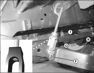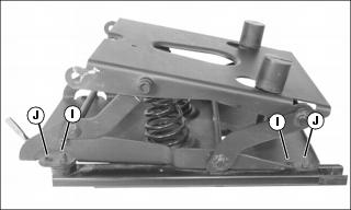 5. Remove four bolts (I) securing seat suspension to slide rails. Use the slide adjustment as necessary to access the front and rear bolts from below.