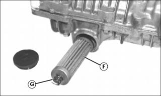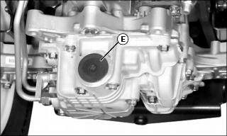 a. Remove cap (E) from front side of transaxle using a 3/8-inch ratchet.