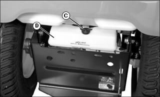 4. Clean area around transaxle fill cap (C) on transaxle oil reservoir (D).