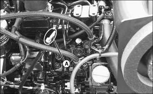 6. Open radiator drain cock (A). Drain the cooling system immediately before rust and dirt settles.