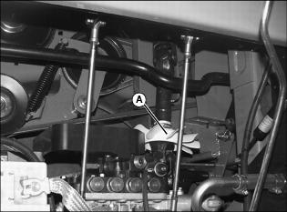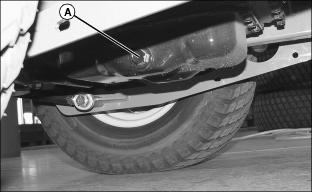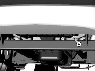 4. Place a drain pan with at least 7.1 L (7.5 qt.) capacity under the radiator drain plug (A).