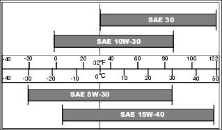 Use oil viscosity based on the expected air temperature range during the period between oil changes.