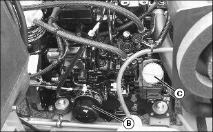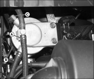 4. Place a drain pan under hose (C) to catch any fuel that may be left in the hoses.