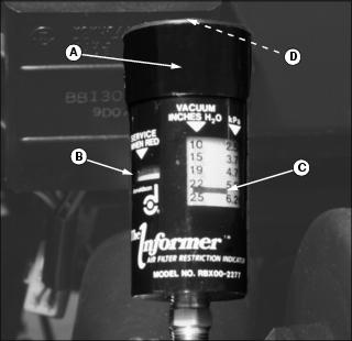 • When operating the machine in extreme heat, dust or other severe conditions, check the air restriction indicator daily.