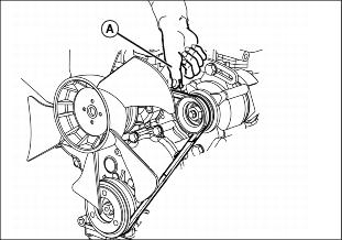 • Check belt deflection using thumb (A). Compare to specification.