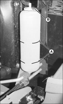 3. Slide hose clamps (A) away from fuel filter (B).