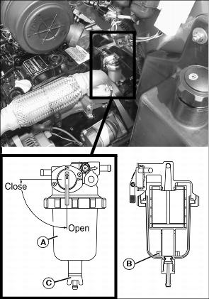4. Check for water in water separator bowl (A).