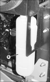 4. If coolant is low remove cap (B) and add coolant.