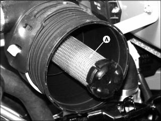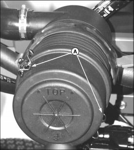 4. Release spring latches (A), and unhook latches from air cleaner housing.